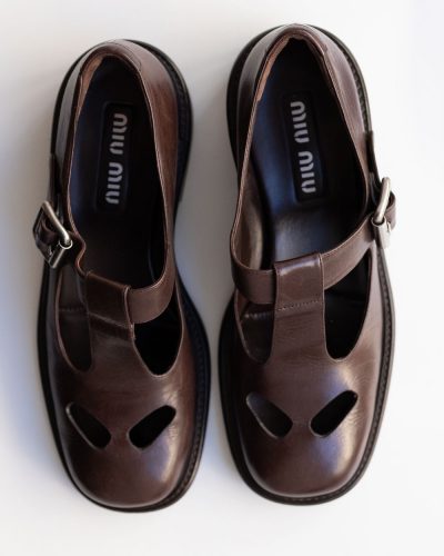 Miu Miu Brown Leather T-Bar Shoes