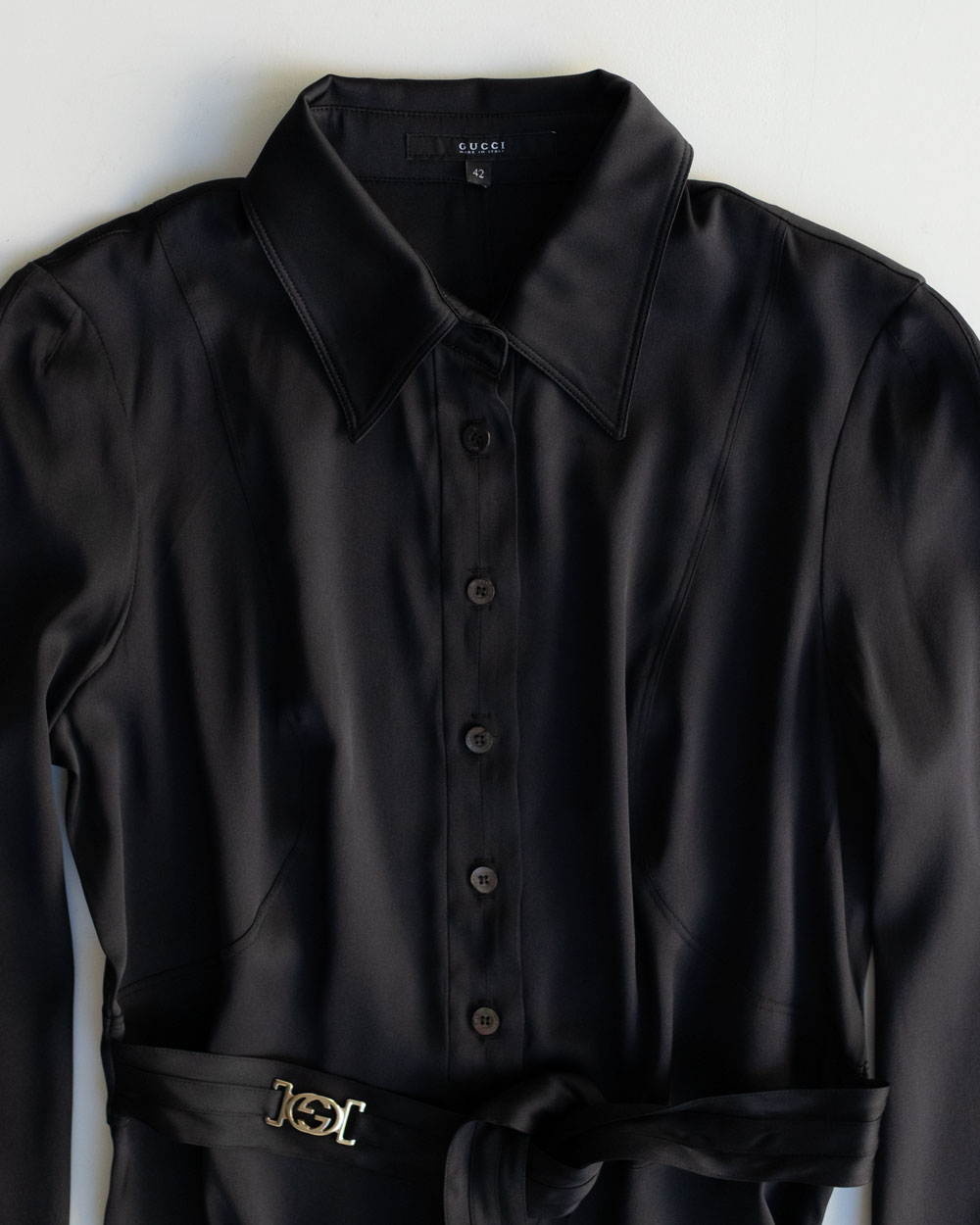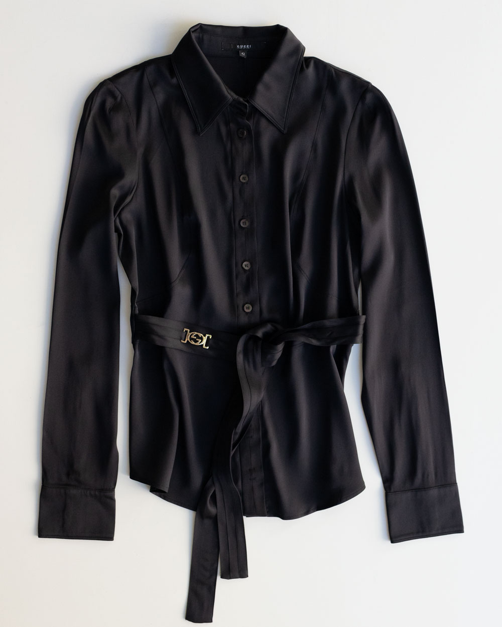 SKU: Gucci Black Silk Satin Blouse GG Belt Neuzwei Store Categories: ,