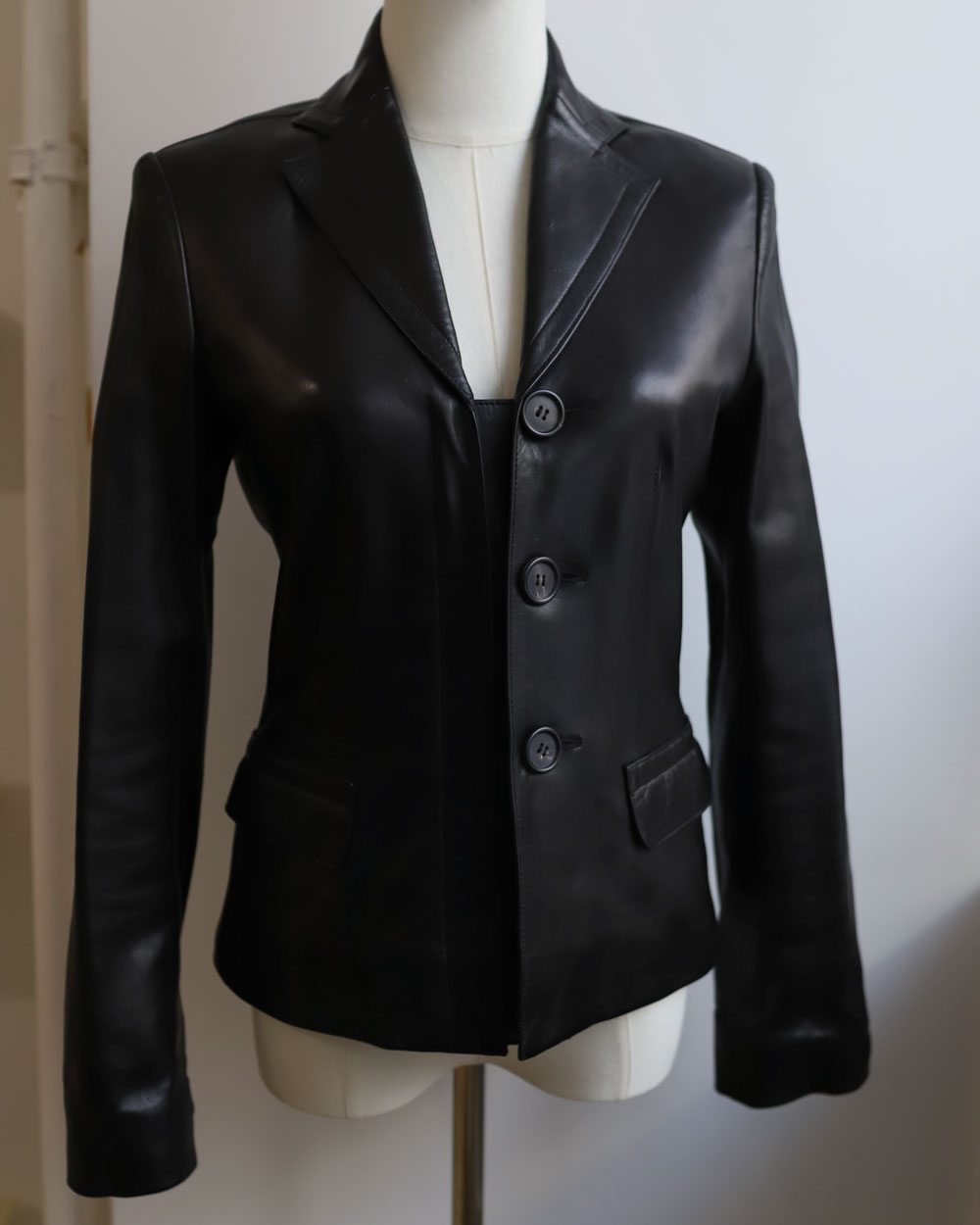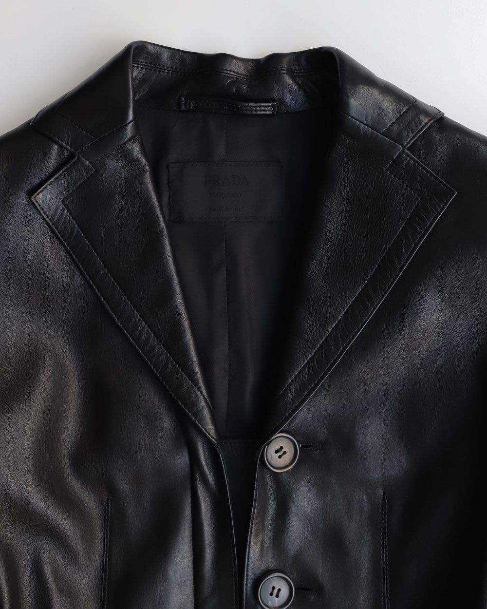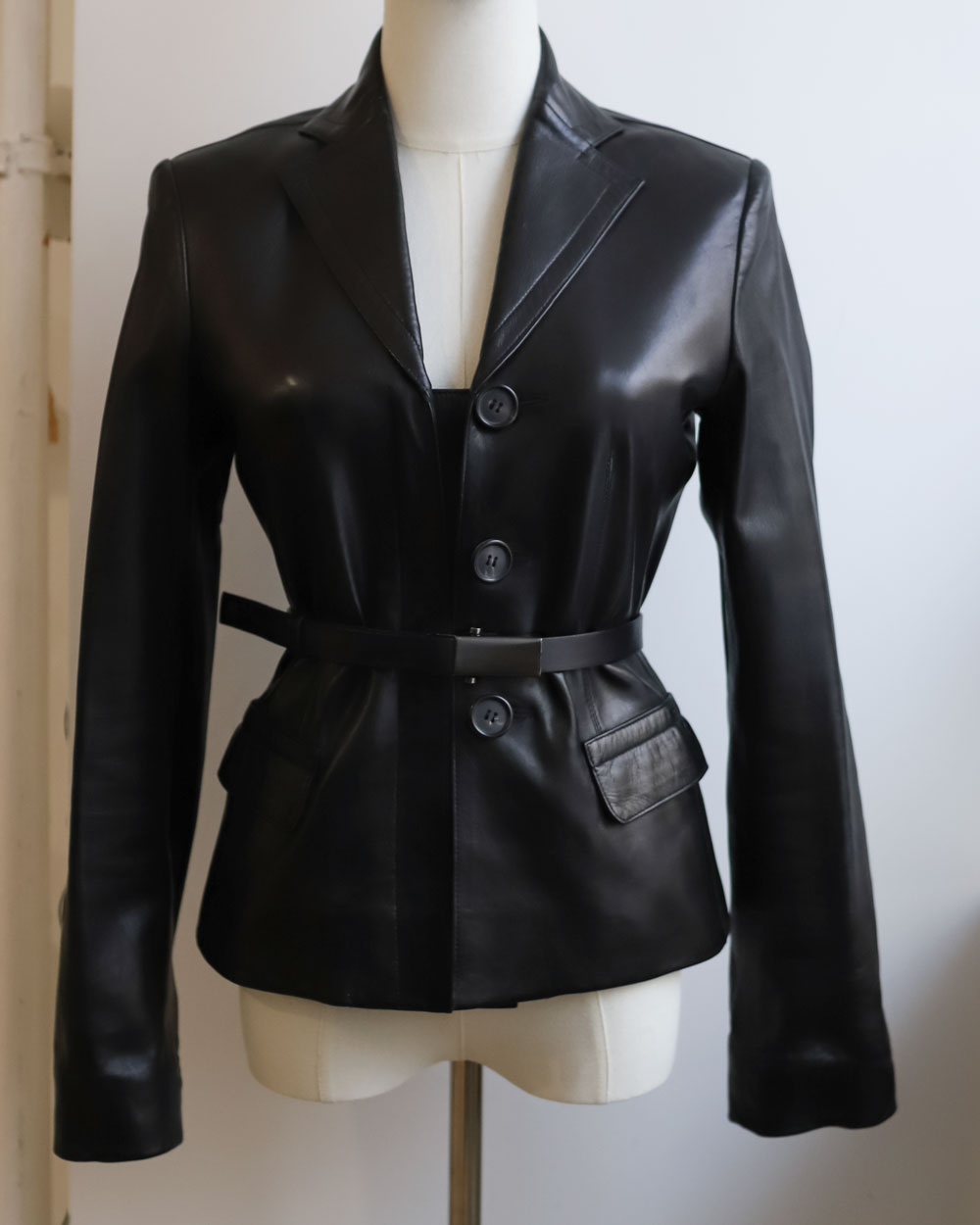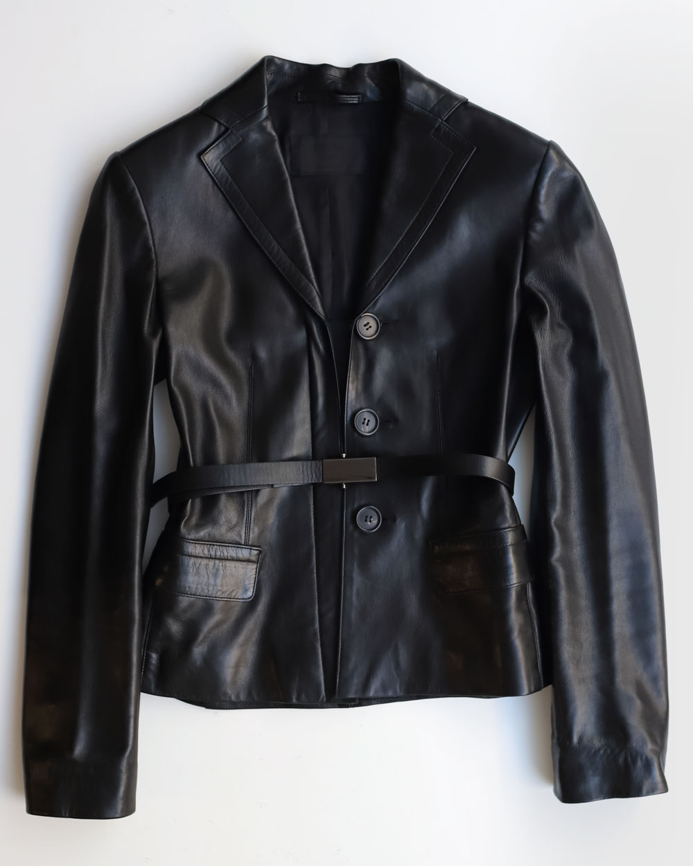 Prada-Black-Belted-Leather Jacket Neuzwei Store
