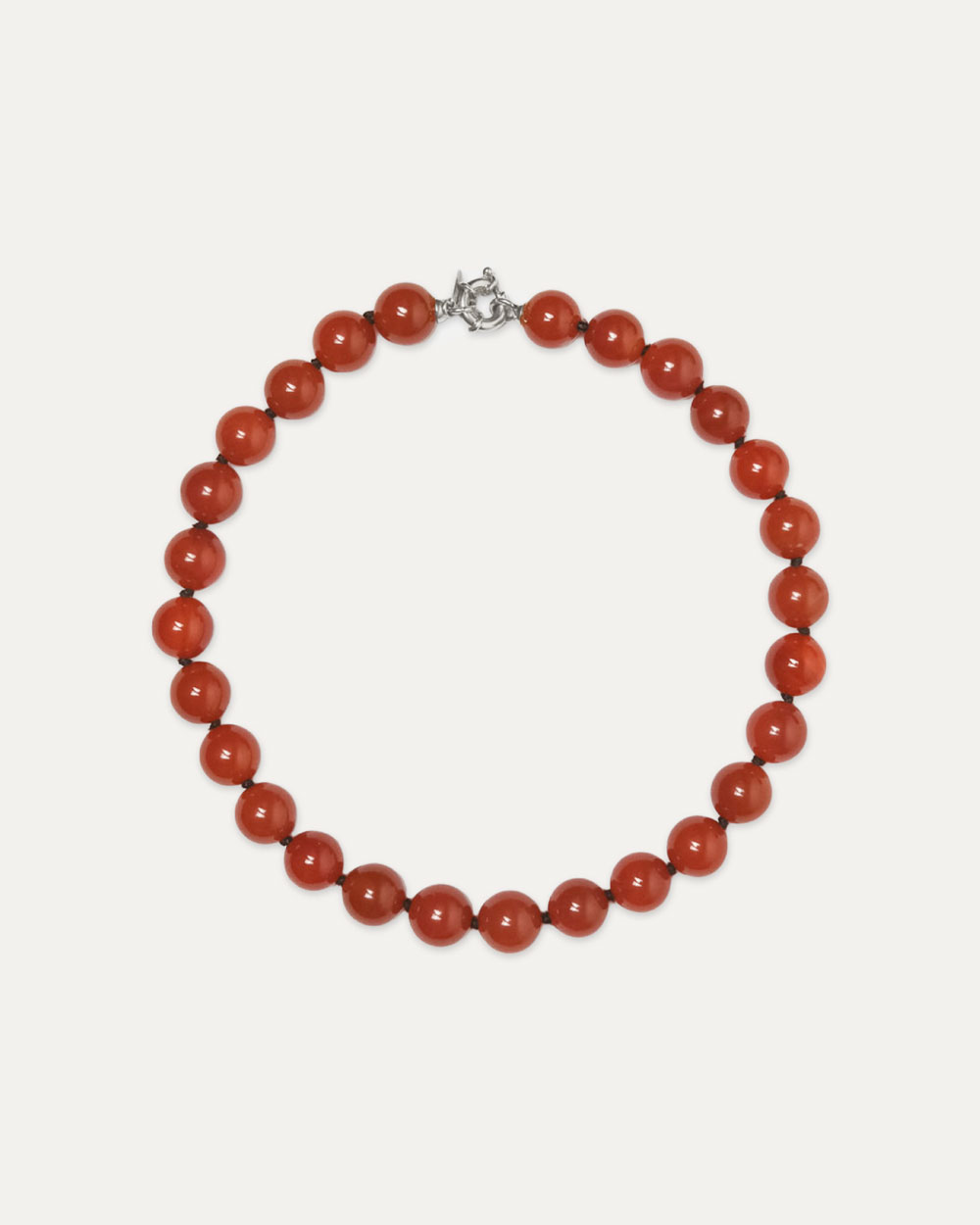 Material: Carnelian stone Bead Size: 14 mm Length: 40 cm Clasp: Silver