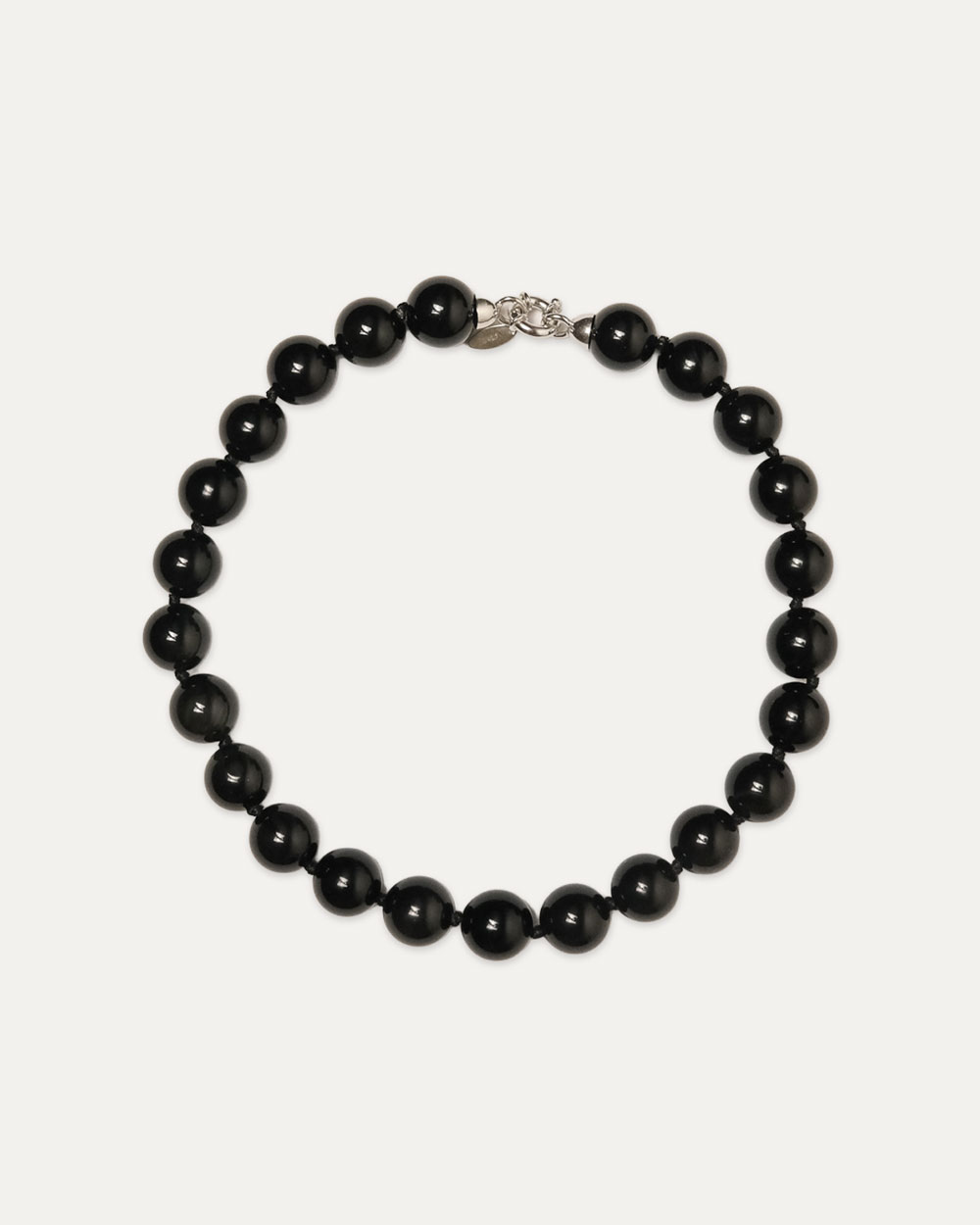 Large, polished obsidian beads catch the light with a glassy, jet-black brilliance – a fragment of elegance and protection.